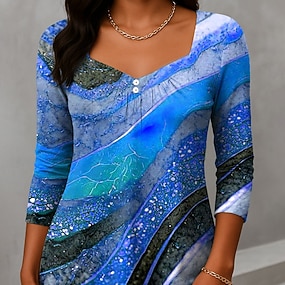 Naisten T-paita Pitkähihainen Pyöreä kaula-aukko Pitkähihainen Tunika Ombre Graafinen Tekstuuri Vintage Tyylikäs Moderni Pyöreä kaula-aukko Tavalliset paidat Päivittäinen painatus Sininen Purppura