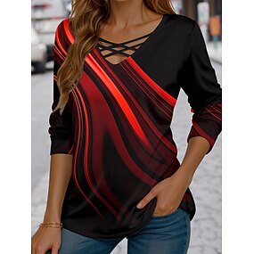 Naisten T-paita Katkaistu Painettu Kuvitettu Geometrinen Vintage Tyylikäs Vapaa-aika Pitkähihainen V kaula-aukko Tavalliset topit Päivittäin Sininen Rubiini Laivastosininen Purppura Apila Kevät Syksy