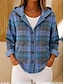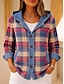 Naisten Rento takki Huppari takki Pidä lämpimänä Mukava Vetoketju Tasku Napit Vapaa-aika Skottiruutukuvio Kausaliteetti ulko- Loma Bile Normaali Hupullinen Loose Fit Pitkähihainen Päällysvaatteet