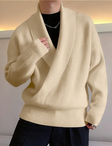 Miesten Neulos Neulepusero Joustin Neuloa Tavalliset topit Kääri Kudottu Tavallinen Huivikaulus Neuleet Muoti Kausaliteetti Arki-asut Vaatetus Syystalvi Musta Valkoinen M L XL