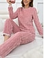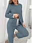 Naisten Yöpukusarja Vapaa-aika Mukavuus Puhdas väri Joustava vyötärö Housut Koti Päivittäin Pitkähihainen Tiukka pyöreä kaula-aukko Sininen Punastuvan vaaleanpunainen Kevät Syksy Talvi Loose Fit