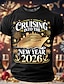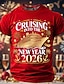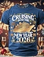 Uusi vuosi Miesten hyvää uutta vuotta Ilotulitus Risteilyalus T-paita Lyhythihainen T-paita 3D-tulostus Tiukka pyöreä kaula-aukko Paita Liioiteltu Suunnittelija Taiteellinen Juhla Katu Klubi Sininen