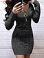 Naisten Mini mekko Paljetti mekko Juhlamekko Coctail-asu Tyylikäs Muoti Juhla Joulu Cocktailjuhla Normaali Tavallinen Pitkähihainen Tiukka pyöreä kaula-aukko Musta Viini Kevät Syksy Talvi