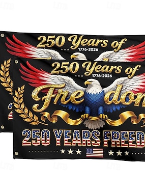 Yhdysvaltojen 250-vuotisjuhlan ulkoilmalippu, isänmaallinen, 1776–2026, jossa on kotkapiha- ja talolippu 4. heinäkuuta