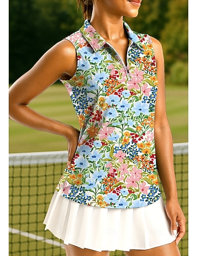 Naisten Kuvitettu Kukat Trooppinen Urheilupaita Poolopaita Tennispaita Hihaton Vetoketju Erittäin elastinen Kosteuden siirtävä Hengittävä Tennis Golf Pickleball Sänkyjen avaus Vetoketjullinen kaulus