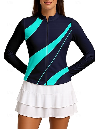 Naisten Geometrinen Kaltevuus Raita Yläosat Urheilupaita Tennispaita Pitkähihainen Vetoketju Kukka-aihe UPF50+ UV-vastustuskykyinen Erittäin elastinen Kosteuden siirtävä Hengittävä Lentopallo Tennis