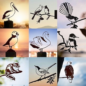 linnut metalli puutarha taide sisustus, hauskoja metalliset seinäveistokset säänkestävät takorauta taidekyltti ulkopuutarha maalaistalo sisustus seinäkoristelu