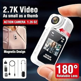 2,7 kt ultra hd -peukalokamera, 1,47 tuuman IPS-näyttö, jatkuva tallennus, puettava mini-vlog-kamera magneettikiinnikkeellä, ihanteellinen urheiluun, matkustamiseen, perheen hetkiin ja seikkailuihin