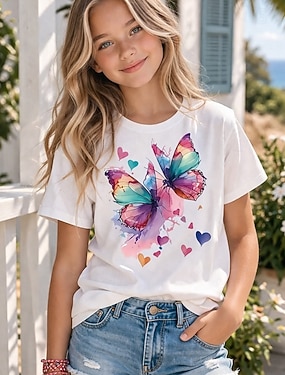 Tyttöjen 3D Kuvitettu Perhonen T-paita Lyhythihainen 3D-tulostus Kesä Kevät Urheilu Muoti Katutyyli Lapset 4-12 vuotta Tiukka pyöreä kaula-aukko Kausaliteetti Päivittäin ulko- Normaali
