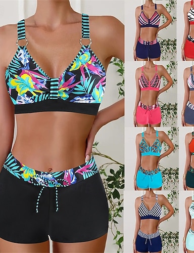 Naisten Uimapuku Tankini 2-osainen Trooppinen Nopea kuivuminen Elastinen Hihaton Uima-asut Uimapuku Lainelautailu Hiekkaranta Uinti Kesä