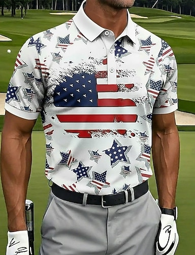 Amerikan itsenäisyyspäivä Miesten Amerikan lippu Golf Urheilu poolopaidat Lyhythihainen Poolopaidat Kauluspaidat Vapaa-aika Urheilu- ja treenivaatteet Festivaalin asu Napit Kevät kesä Sininen Musta