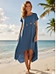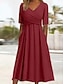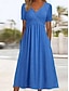 Naisten Midimekko A linjainen mekko Kesämekko Vapaa-aika Päivittäin Normaali Tavallinen Lyhythihainen V kaula-aukko Sininen Rubiini Apila Harmaa Kesä Kevät