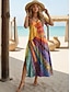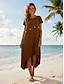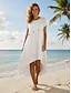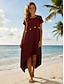 Naisten Midimekko A linjainen mekko Kesämekko Vapaa-aika Loose Fit Tavallinen Lyhythihainen V kaula-aukko Sininen Valkoinen Rubiini Ruskea Kesä Kevät