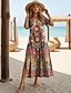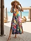 Naisten Midimekko Kietaisumekko A linjainen mekko Loma Vapaa-aika ulko- Bile Normaali istuvuus Kukka Kuvitettu Lyhythihainen V kaula-aukko Sininen Kesä Kevät