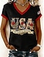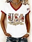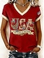 Amerikan itsenäisyyspäivä Naisten T-paita Painettu Kuvitettu Lippu Vintage Tyylikäs Klassinen Lyhythihainen V kaula-aukko Tavalliset topit Päivittäin Musta Valkoinen Rubiini Kesä Kevät