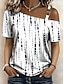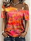 Naisten T-paita Painettu Epäsymmetrinen Kuvitettu Abstrakti Vintage Muoti Tyylikäs Lyhythihainen Yksiolkaiminen Olkaimeton Tavalliset topit Päivittäin Bile Viikonloppu Sininen Valkoinen Oranssi Kes
