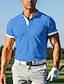 Miesten Golfpaita Golf poolopaidat Kausaliteetti Työ Kauluskäänne Lyhythihainen Perus Moderni Väripalikka Tavallinen Tilkkutäkki Napit Kesä Kevät kesä Tyköistuva Sininen Järven sininen Musta