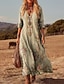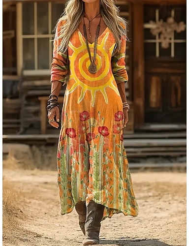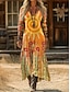 Naisten Maksimekko Kesämekko Loma Vapaa-aika Boheemi Päivittäin Loose Fit Kuvitettu Väripalikka Etninen Pitkähihainen V kaula-aukko Punastuvan vaaleanpunainen Oranssi Apila Vaalea oranssi Kesä Kevät