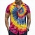 Miesten Hippi Solmuvärikuosi Paita Button Up paita Lyhythihainen Muoti rento Katuvaatteet Loma Kesä Kevät Sänkyjen avaus 3D-tulostus kauluspaidat Punastuvan vaaleanpunainen Rubiini Purppura