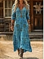 Naisten Maksimekko Kesämekko Loma Vapaa-aika Boheemi Päivittäin Loose Fit Kukka Pitkähihainen V kaula-aukko Sininen Musta Keltainen Rubiini Kesä Kevät