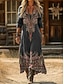 Naisten Maksimekko Kesämekko Loma Vapaa-aika Boheemi Päivittäin Normaali Kukka Kuvitettu Paisley-kuvio Pitkähihainen V kaula-aukko Musta Rubiini Apila Kesä Kevät