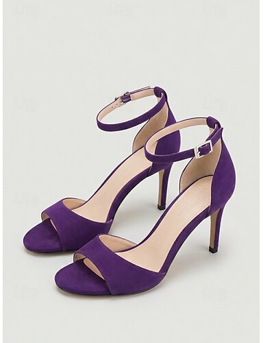 naisten violetit mokkanahkaiset nilkkaremmillä varustetut sandaalit, avokärkiset stilettokorkokengät cocktailjuhliin, häihin &iltatapahtumat