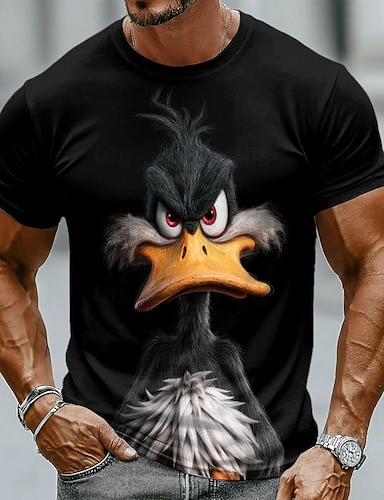 Miesten äreä musta ankka takissa 3D-graafinen siisti katumuotipaita, kapea istuvuus, ulkoilu, vapaa-ajan vaatetus, suunnittelijavaatteet, s m l xl xxl xxxl
