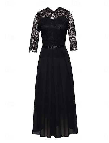 Naisten Maksimekko Pitsimekko Musta mekko Rento mekko Tyylikäs Muoti Moderni ulko- Loma Bile Normaali Tavallinen 3/4 hiha V kaula-aukko Sininen Musta Rubiini Kesä Kevät