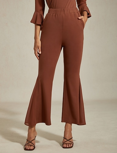 naisten housut kahvinruskeat butterflex-modaalihousut kellopohjalla whisperflow-sifonki läpikuultavat paneelit levenevät lahkeet joustava vyötärö päivittäin työ loma kevät syksy kesä