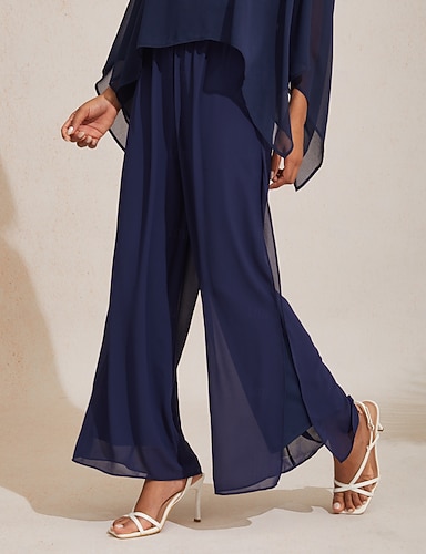 Naisten kellopohjahousut tummansiniset butterflex-modaalikuvio läpikuultava sifonkipaneelit levenevät lahkeet joustava vyötärö tyylikäs mukava päivittäin työ loma kevät syksy kesä