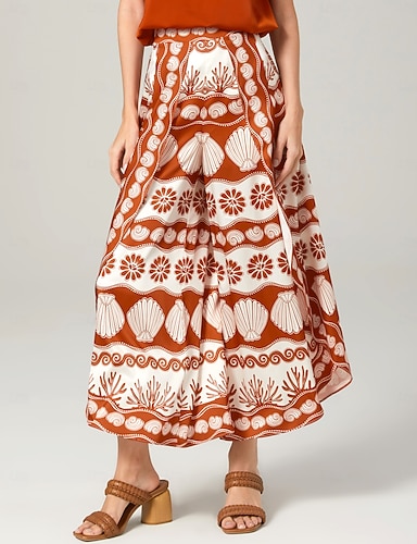 satiini löysät leveät lahkeet loma taiteellinen/retropainatus kausaalihousut