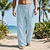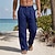 Miesten Pellavahousut Housut Kesähousut Roikkuvat housut Kurenauha Joustava vyötärö Suora jalka Tavallinen Mukavuus Hengittävä Täyspitkä Päivittäin ulko- Pyhäpäivä Muoti Klassinen tyyli Sininen