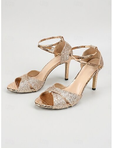 Naisten vintage 1920-luvun Great Gatsby -tyyliset kultakorkosandaalit - elegantit metallinhohtoiset remmilliset stilettot ristikkäisillä yksityiskohdilla flapper-juhliin ja häihin &lumoavia
