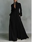 Naisten Rento mekko Maksimekko Ruffle Helma Vapaa-aika Halkaistu kaula Pitkähihainen Musta Valkoinen Khaki Väri