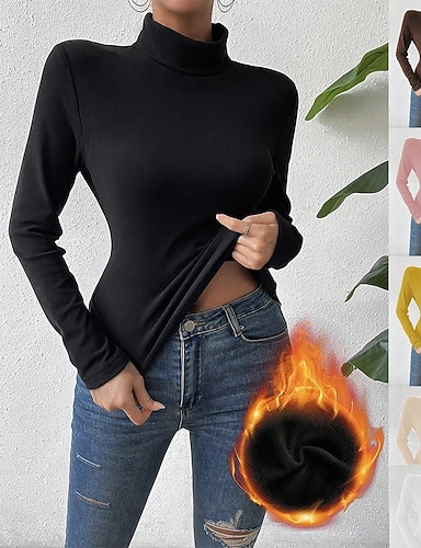Naisten Pusero Yhtenäinen väri Tyylikäs Perus Vapaa-aika Pitkähihainen Poolokaulus Tavalliset topit Päivittäin Musta Valkoinen Keltainen Punastuvan vaaleanpunainen Ruskea Kevät Syksy Talvi