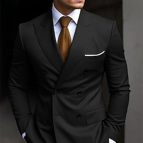 Miesten Puvut Häät Musta Valkoinen Kevät, Syksy, Talvi, Kesä Puku Pystykäänne Liiketoiminta Työasut Yhtenäinen Tyköistuva 2-osainen setti Kuusi nappia kahdessa rivissä