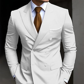 Miesten Puvut Häät Valkoinen Rubiini Kevät, Syksy, Talvi, Kesä Puku Lovikäänne Yhtenäinen Normaali istuvuus 3-osainen setti Yksirivinen yksi nappi