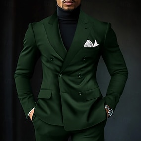 Miesten Puvut liiketoiminta Tumman vihreä Kevät, Syksy, Talvi, Kesä Puku Juhla Työasut Yhtenäinen Normaali istuvuus 2-osainen setti Kuusi nappia kahdessa rivissä