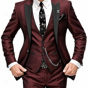 Miesten Työpuvut Kausaliteetti Puolivirallinen Musta Viininpunainen Kevät, Syksy, Talvi, Kesä Puku Pystykäänne Päivittäin Liiketoiminta Yhtenäinen Räätälöity istuvuus 3-osainen setti Yksirivinen