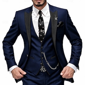 Miesten Puvut liiketoiminta Häät Musta Laivaston sininen Kevät, Syksy, Talvi, Kesä Puku Lovikäänne Muoti Juhla Yhtenäinen Normaali istuvuus 3-osainen setti Yksirivinen yksi nappi