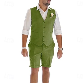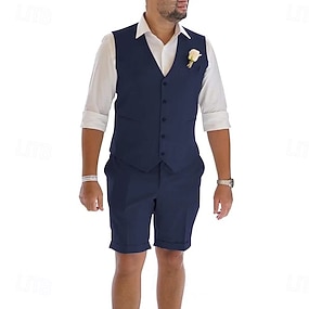 Miesten Puvut Ranta häät Keväthäät Laivaston sininen Armeijan vihreä Kevät kesä Puku Pystykäänne Juhla Yhtenäinen Räätälöity istuvuus 3-osainen setti Yksirivinen yksi nappi