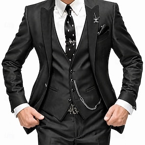 Miesten Puvut Häät Musta Valkoinen Kevät, Syksy, Talvi, Kesä Puku Lovikäänne Yhtenäinen Normaali istuvuus 3-osainen setti Yksirivinen yksi nappi