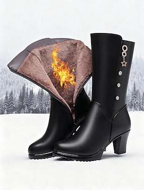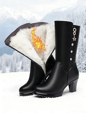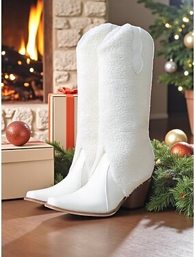 Naisten valkoiset lampaannahkakengät paksulla korolla - mukava joulutyyli, täydellinen loma-asuihin ja juhlatilaisuuksiin