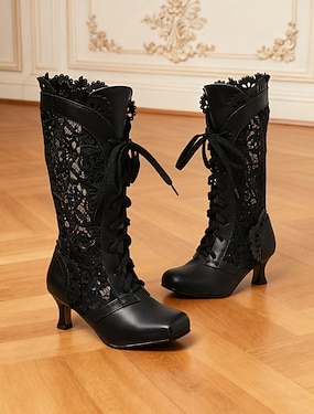 Naisten mustat paksut halloween-tyyliset nauhalliset platform-saappaat perhoskirjonnalla - goottityyliset katumuotinilkkurit aavemaisiin juhliin ja arkeen, jotka sopivat näyttäviin asuihin
