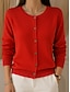 Naisten Neulos Neule Vapaa-aika Pehmeä Puhdas väri Joustin Tiukka pyöreä kaula-aukko Napit Kudottu Pitkähihainen Tavalliset topit Neuloa ulko- Päivittäin Viikonloppu Valkoinen Rubiini Syksy Talvi