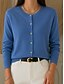 Naisten Neulos Vapaa-aika Yhtenäinen väri Tiukka pyöreä kaula-aukko Napit Pitkähihainen Tavalliset topit Neuloa Koti Päivittäin Pyhäpäivä Sininen Musta Kevät Syksy