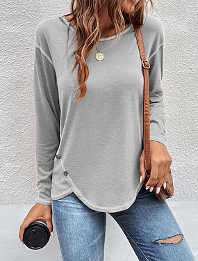 Naisten Pusero Napit Tavallinen Trooppinen Tyylikäs Vapaa-aika Pitkähihainen Tiukka pyöreä kaula-aukko Tavalliset topit Päivittäin Pyhäpäivä Bile Laivaston sininen Vaaleanharmaa Vaalean sininen Syksy
