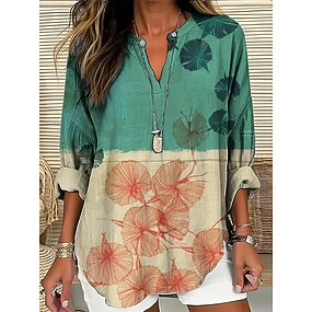 Naisten Paita Boho paita Pusero Painettu Kukka Kuvitettu Böömi Vintage Päivittäin Pitkähihainen V kaula-aukko Pitkät topit Päivittäin Pyhäpäivä Bile Vaalean vihreä Kesä Kevät