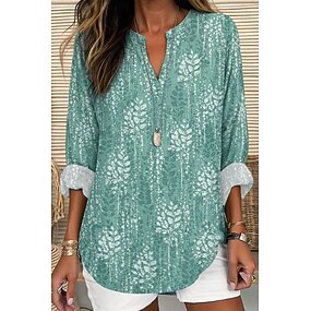 Naisten Pusero Painettu Kuvitettu Geometrinen Vintage Päivittäin Tyylikäs Pitkähihainen V kaula-aukko Tavalliset topit Kausaliteetti Päivittäin Sininen Keltainen Oranssi Apila Khaki Kesä Kevät