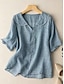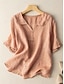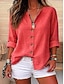 Naisten Paita Puuvillaiset pellavapaidat Pusero Tasku Napit Tavallinen Aktiivinen Tyylikäs 3/4 hiha V kaula-aukko Tavalliset topit Päivittäin Katuvaatteet Pyhäpäivä Musta Purppura Oranssi Ruusun